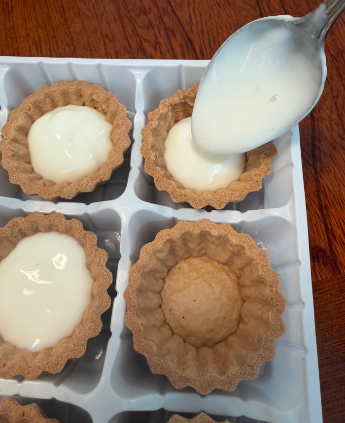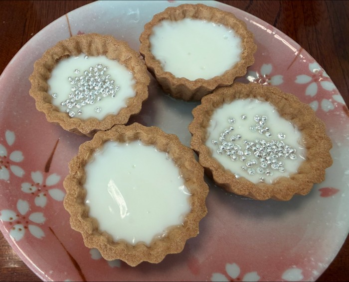 | 冷蔵庫で10分程度冷やす。(冷蔵庫に置きすぎるとタルトの下からヨーグルト液が漏れてくるので注意!) |